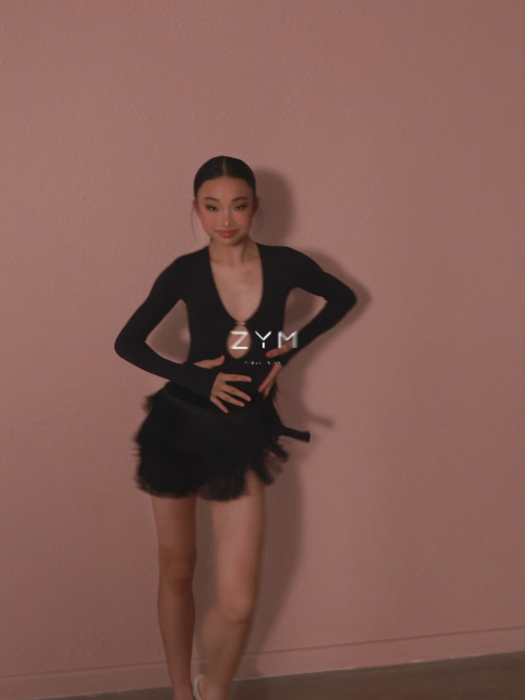 With a playful deep-V neckline and cute cut-out design, this bodysuit adds a fun, bold touch. The metallic logo adds a pop of shine just above the cut-out for a little extra sparkle. Made from soft, breathable fabric, it hugs your body comfortably, keeping you cool and stylish all day long—perfect for every twirl and leap.